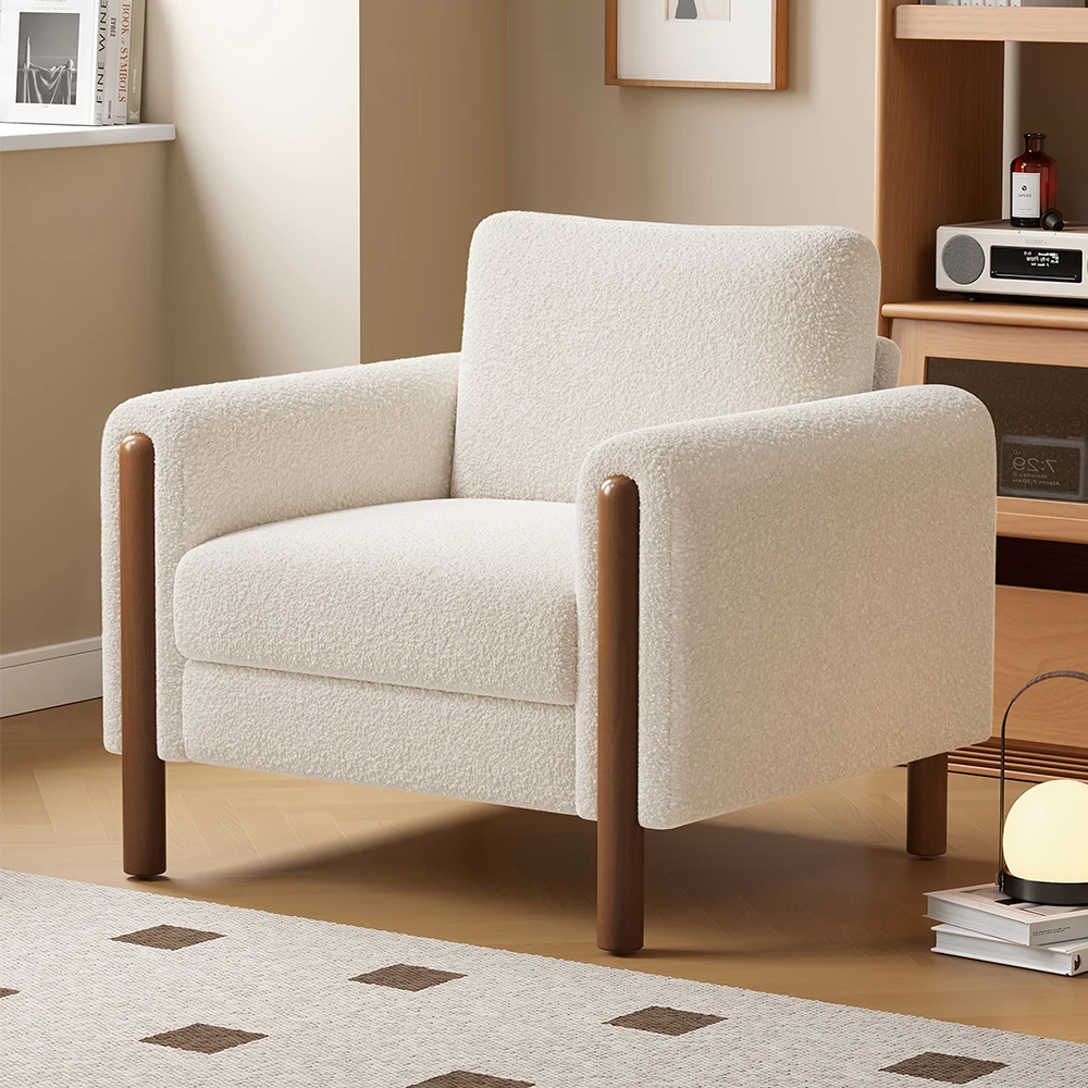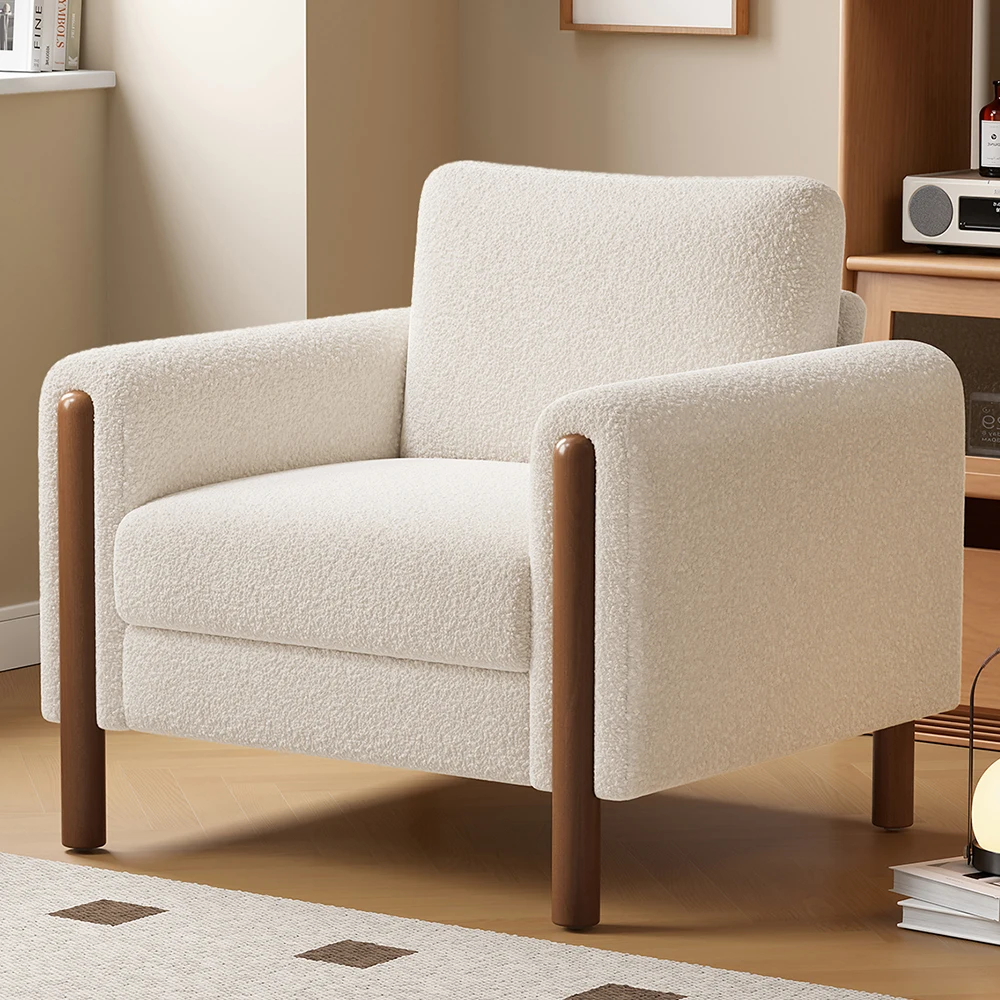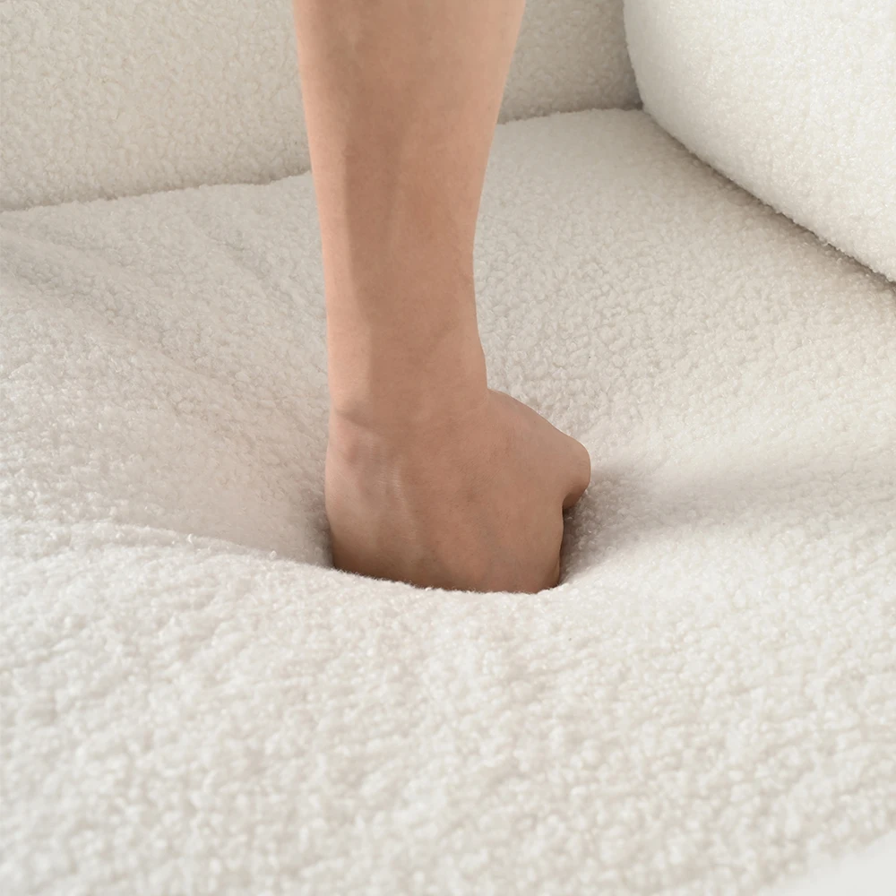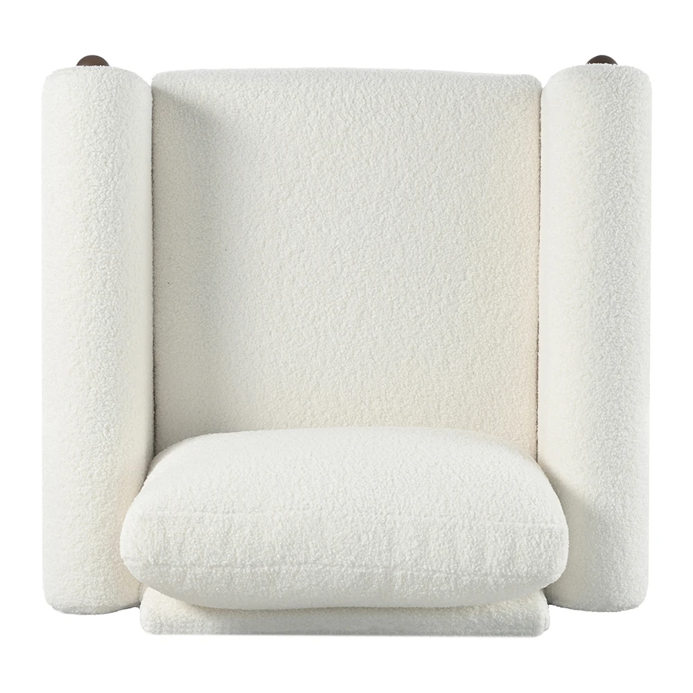 Experience unmatched comfort with our luxurious lambswool sherpa chair. Crafted from soft and breathable fabric, this accent chair provides a cozy and gentle seating experience. The moderate padded cushions and armrests offer the ultimate skin-friendly material, enveloping you in pure comfort.